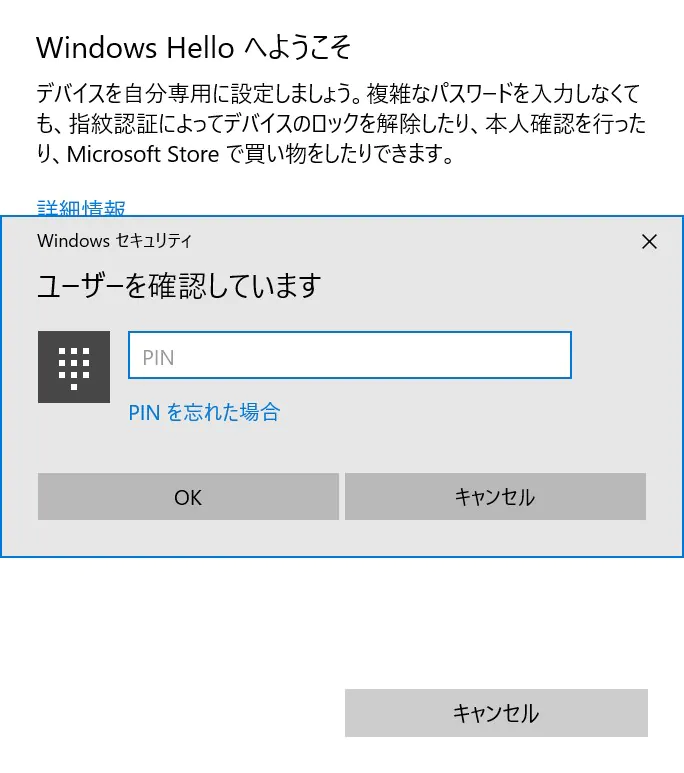 進めていくとPINコード入力を求められるから、普段サインインに使っているパスワードを入力してセキュリティを突破。