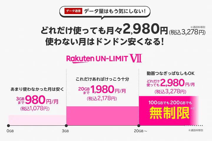 楽天UN-LIMITの詳細なプランは下記のとおり。