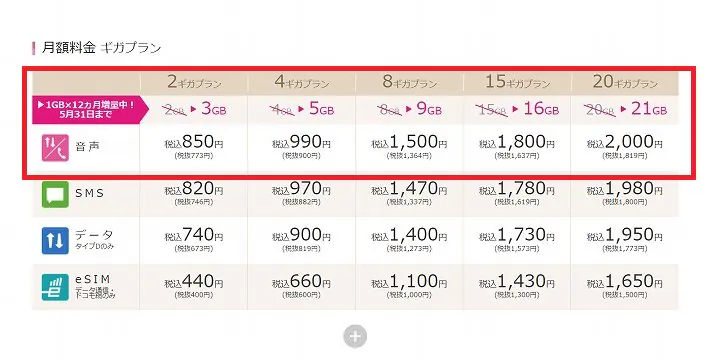 また、今なら毎月のデータ容量が12ヶ月間1GB増量されるのでプラン内容もお得。