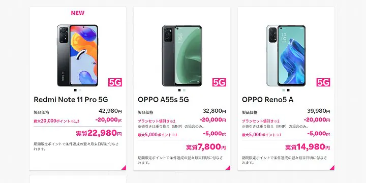 ただ、Redmi Note 11 Pro 5Gはキャンペーン指定スマホじゃないから5,000WAONポイントがさらに貰えないのが残念。