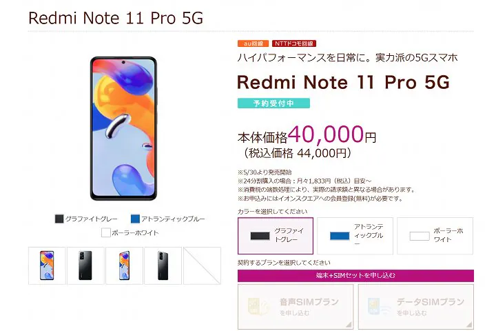 IIJmioならRedmi Note 11 Pro 5Gが22,800円